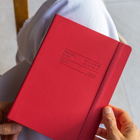 Incorpora cierre con goma elástica, ideal para mantener la agenda siempre cerrada y protegida, y cortes tintados, que le dan un acabado moderno y distintivo.