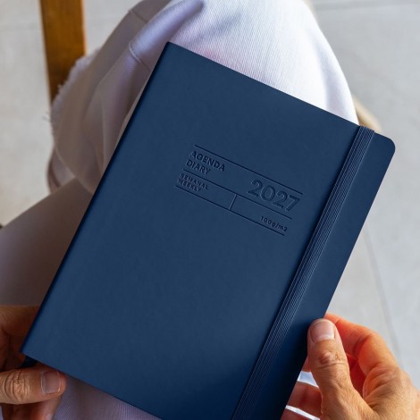 Incorpora cierre con goma elástica, ideal para mantener la agenda siempre cerrada y protegida, y cortes tintados, que le dan un acabado moderno y distintivo.