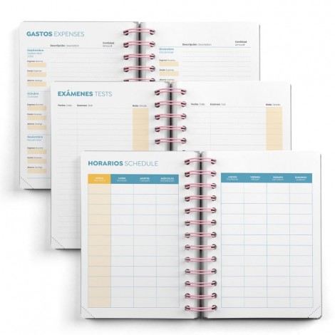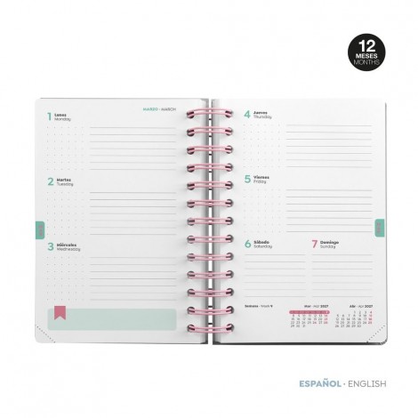 Encuadernación wire-o con hojas microperforadas en la esquina para señalar la fecha actual