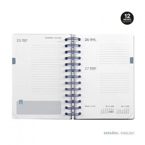 Encuadernación wire-o con hojas microperforadas en la esquina para señalar la fecha actual