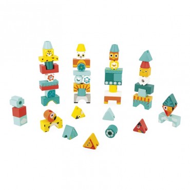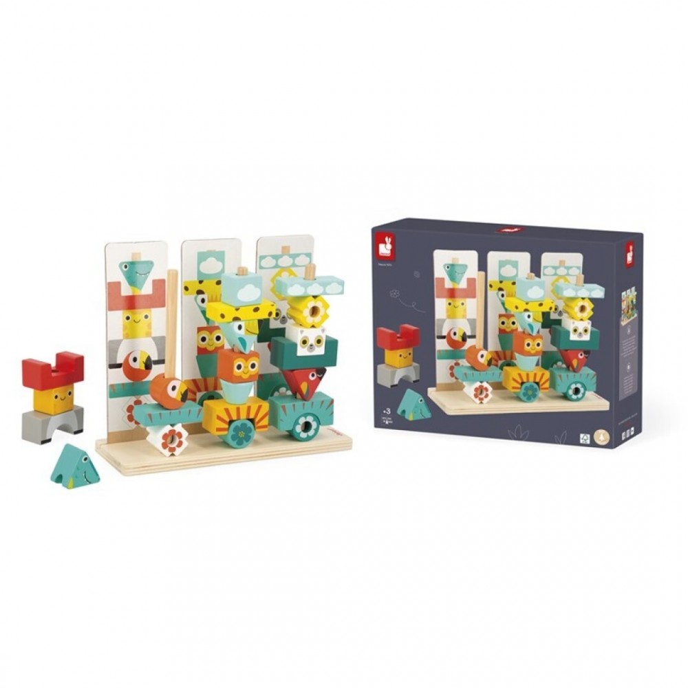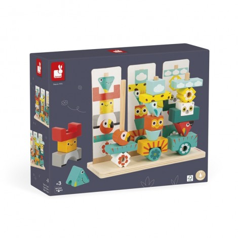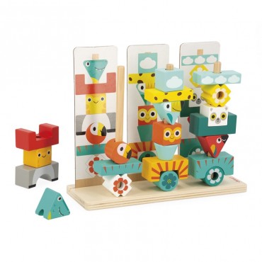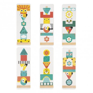 ¡Venid a conocer los distintos tótems de la selva tropical! Con 52 piezas de madera y 6 tarjetas impresas por ambos lados, el niño podrá reproducir los 12 modelos propuestos o dar rienda suelta a su imaginación creando sus propios y originales tótems. En las coloridas piezas el niño descubrirá, bien escondidos, a los animales de la selva, como el mono, el loro o el cocodrilo. Juguete educativo ideal para estimular la capacidad de observación y ejercitar la destreza. Juguete de madera y cartón FSCTM para niños a partir de 3 años.
