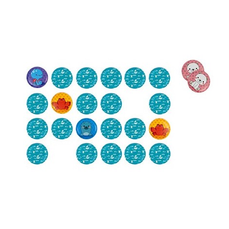 Juego de memoria de 24 tarjetas de espuma que flotan en el agua, ideal para jugar en el baño. Son mágicas, sumerge las piezas en el agua para que se queden sujetas en los azulejos.