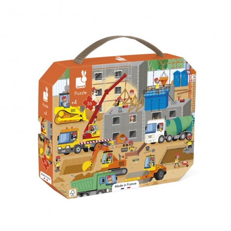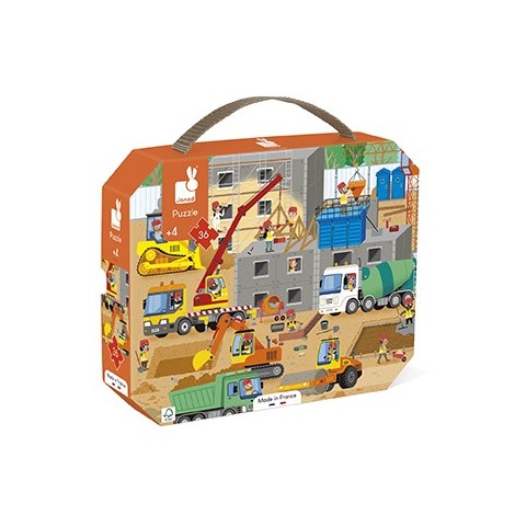 ¡Cuidado con la cabeza, que viene la grúa! ¡Todos a trabajar para terminar de construir la casa! El niño será el encargado de obra y el responsable de los acabados. Este precioso puzle de cartón de 36 piezas con un montón de detalles es ideal para conocer nuevos oficios. El niño ejercitará la memoria y la destreza con este bonito puzle de cartón de 36 piezas. Este puzle se transporta fácilmente gracias a su bonito maletín y a su asa de tela. Contiene un póster que sirve como modelo para los principiantes. Los más avezados podrán a continuación realizar el puzle con total autonomía. Fabricado en Francia, producto FSC TM y hecho con tintas vegetales. Puzle para niños a partir de 4 años.