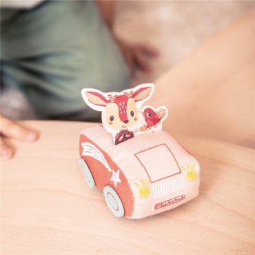 Una alegre melodía suena en el coche de Stella y Petirrojo agita los pompones. ¿Vienes con nosotros? Este vehículo flexible es ideal para las manitas del bebé. ¡Un poquito de marcha atrás y ya está! el vehículo parte de nuevo. |