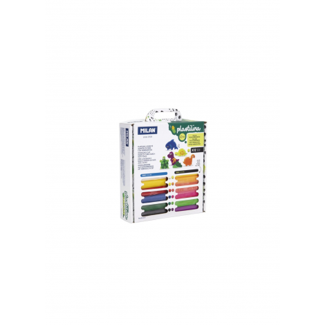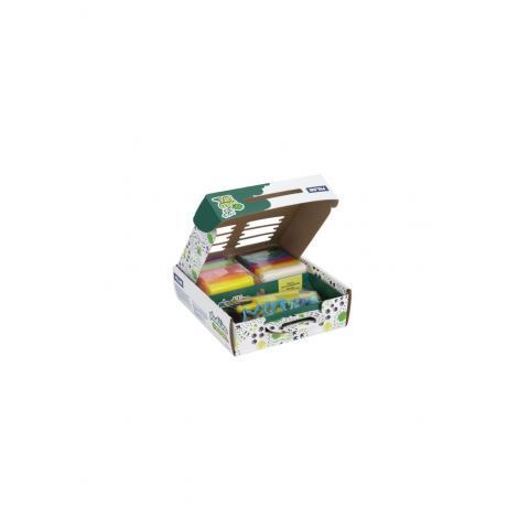 Caja con 4 barras de plastilina de colores a base de almidón de maíz (sin gluten). Fácilmente moldeable, se mantiene suave y no se seca en el envase original. Colores rojo, amarillo, verde y azul. Peso aproximado de cada barra 82 g. Colores mezclables.