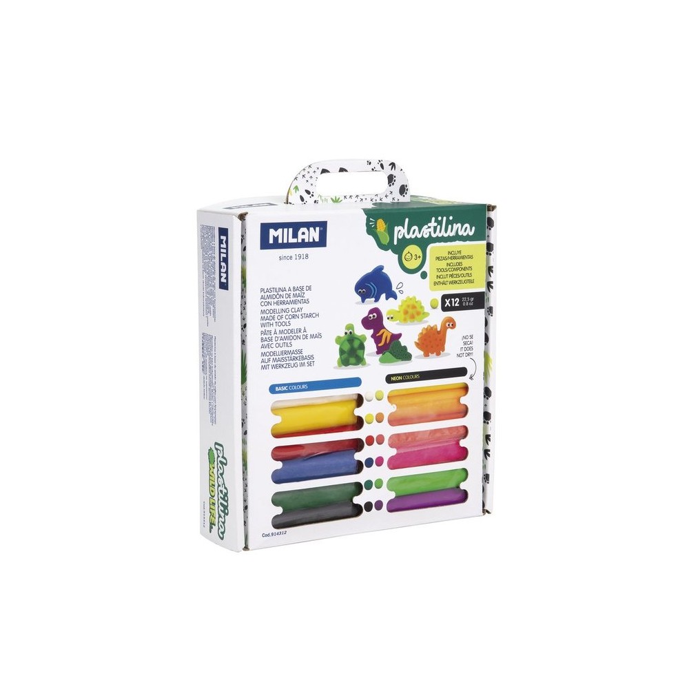 Caja con 4 barras de plastilina de colores a base de almidón de maíz (sin gluten). Fácilmente moldeable, se mantiene suave y no se seca en el envase original. Colores rojo, amarillo, verde y azul. Peso aproximado de cada barra 82 g. Colores mezclables.