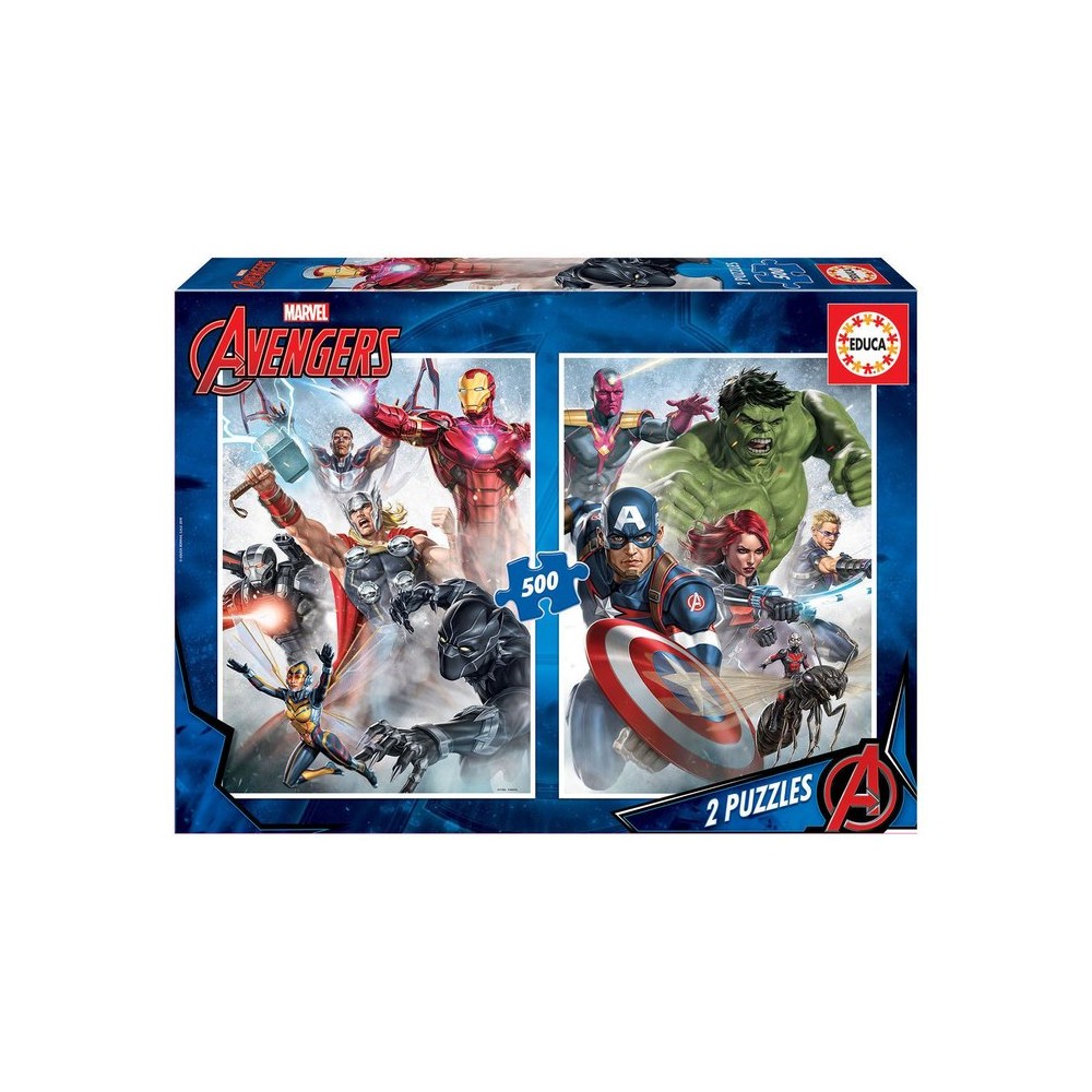 Pack 2 puzzles Educa 500 piezas Avengers. Doble diversión Marvel, piezas resistentes, encaje preciso.