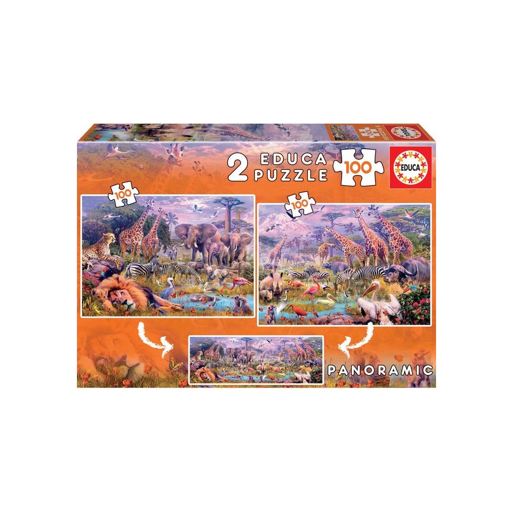 PUZZLE 2X100 PIEZAS ANIMALES SALVAJES Y DINOSAURIOS 8412668186064 | SET EDUCATIVO PARA NIÑOS Y NIÑAS