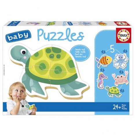 BABY PUZZLE ANIMALES ACUÁTICOS | EDUCA – 5 MINI PUZZLES PROGRESIVOS 3‑5 PIEZAS