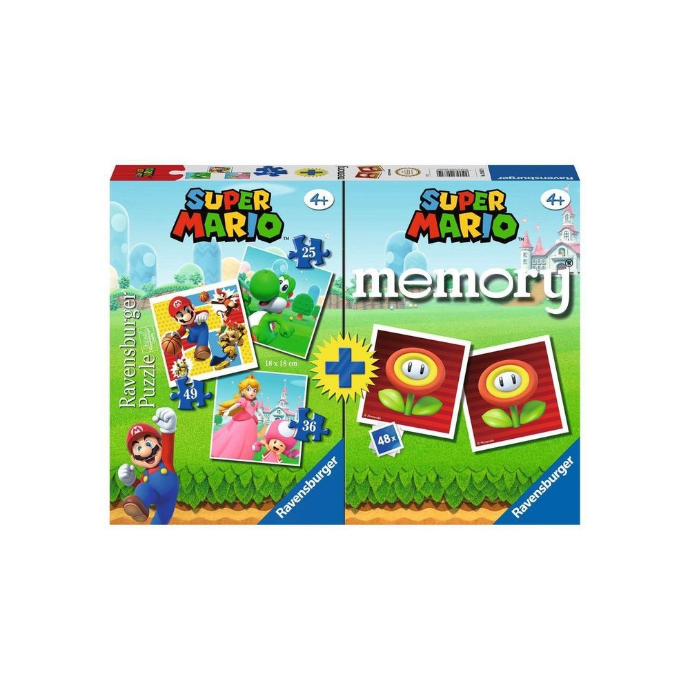 MEMORY + 3 PUZZLES MULTIPACK SUPER MARIO | RAVENSBURGER (25‑49 PIEZAS)