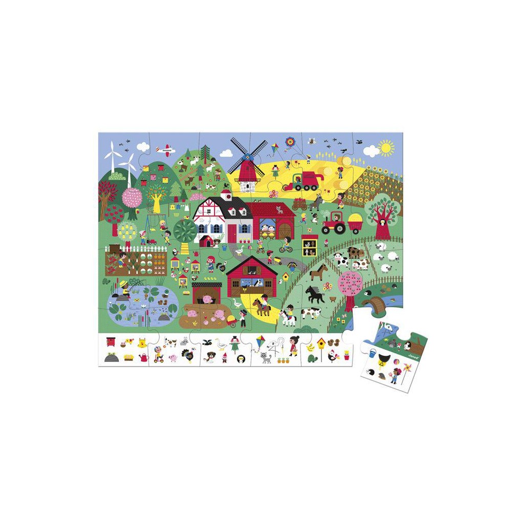 Puzzle de Observación La Granja 24 piezas Janod. Rompecabezas infantil con escena campestre y juego de búsqueda. Ideal para estimular la concentración.