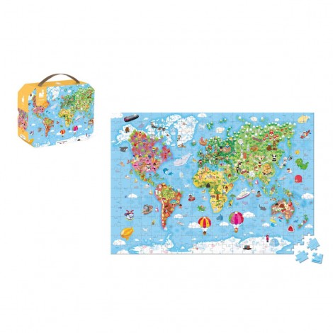 Puzzle Gigante Atlas Mundial 300 piezas Janod. Rompecabezas educativo con mapa ilustrado que estimula la concentración y el aprendizaje geográfico.
