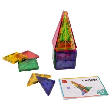 Ideal como introducción al mundo de los juegos magnéticos, el set de 16 piezas transparentes es compatible con otros kits magnéticos, permitiendo ampliar las posibilidades de construcción.
