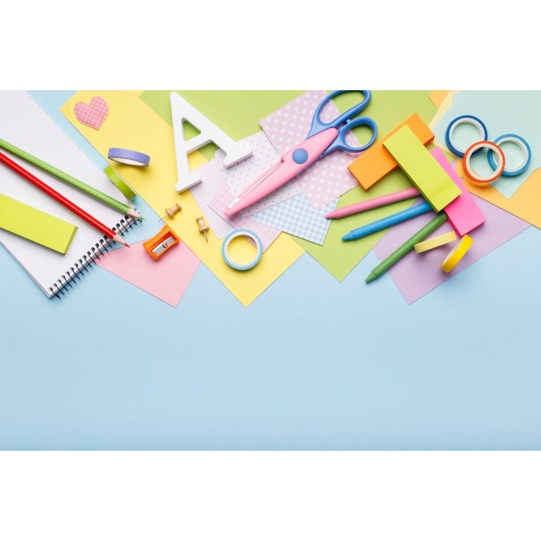 Lápices de colores y papel de dibujo: si tus hijos son pequeños no necesitarán el papel especial de dibujo, pero sí están en cursos superiores, necesitarán algunas hojas de papel de mayor gramaje para realizar los ejercicios de Plástica.
