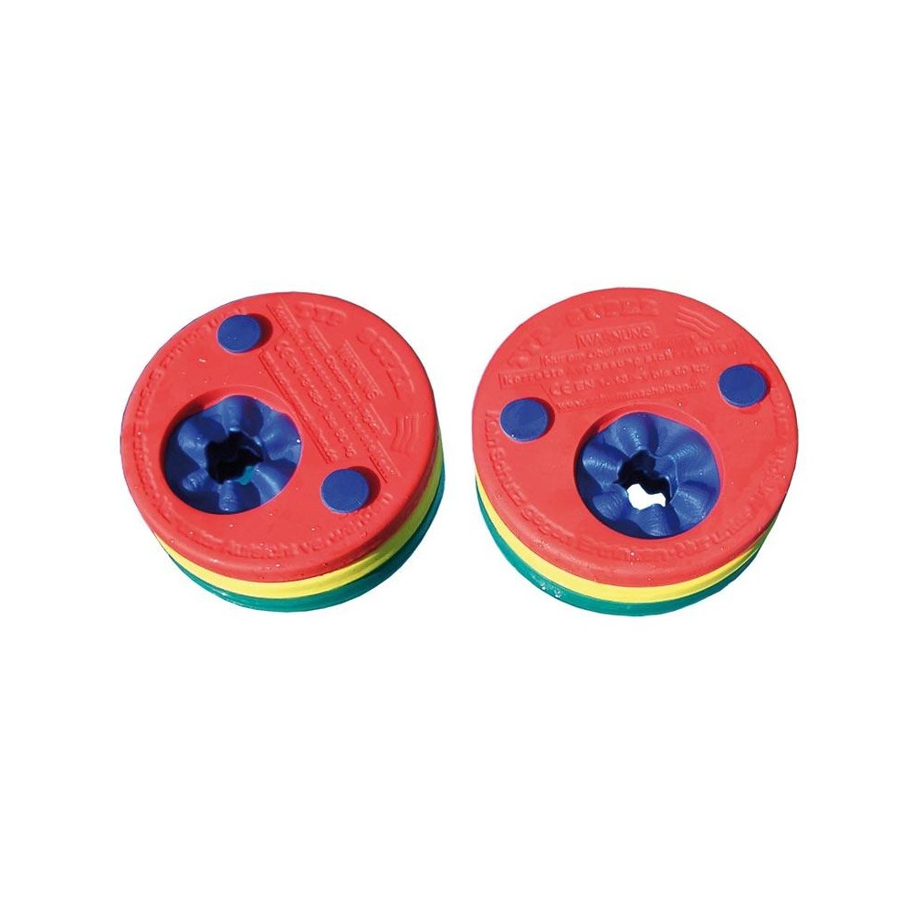 Este sistema modular permite ajustar la flotabilidad retirando o añadiendo discos a medida que el niño mejora su habilidad en el agua. Fabricados en polietileno resistente, no se pinchan ni se deforman, y son compatibles tanto con agua dulce como salada.