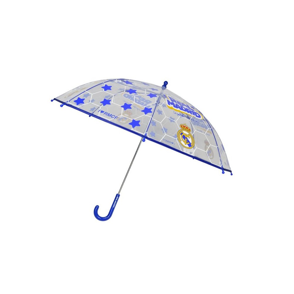 PARAGUAS MANUAL 48 CM TRANSPARENTE REAL MADRID