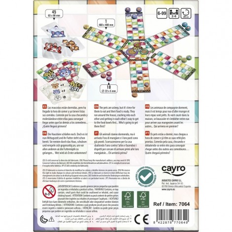 El juego de mesa Pet’s Run de Cayro es un divertido juego familiar donde las mascotas compiten por llegar primero a su comida.
