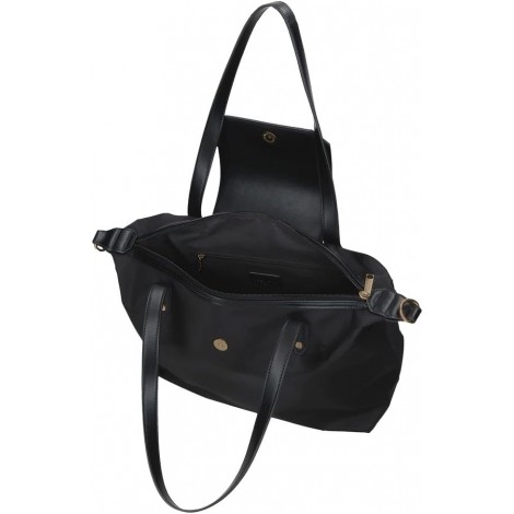 Tote de viaje grande de 14x29x26 m fabricada en Poliéster y PU. Compartimento principal amplio con cierre de cremallera y solapa de cierre de clic. Bolsillo traseo con cierre de cremallera. Cuenta con un bolsillo interno con cierre de cremallera y dos compartimentos extras para mantener la organización. Con asa larga, perfecta para llevar al hombro. De Joumma Bags