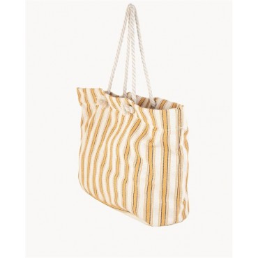 Bolso de playa lona con cremallera + neceser lona con cremallera Kbas rayas color MOSTAZA
