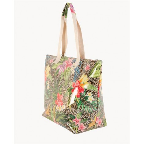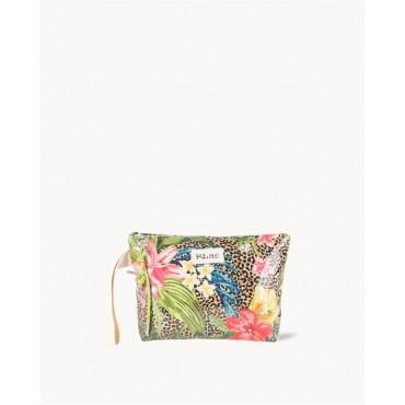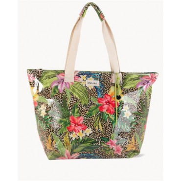 PACK BOLSO Y NECESER PLAYA LONA PLASTIFICADA KBAS CON CREMALLERA FLORAL HAWAIANA