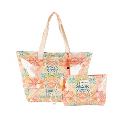 PACK BOLSO Y NECESER PLAYA LONA PLASTIFICADA KBAS CON CREMALLERA NARANJA