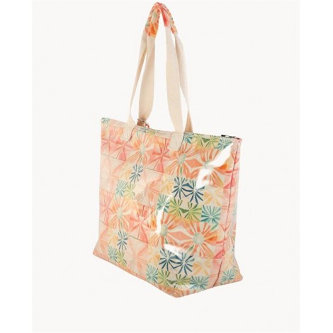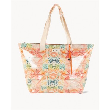 El bolso está fabricado en lona plastificada impermeable, ideal para proteger tus pertenencias frente a la arena y la humedad. Su gran capacidad permite transportar todo lo necesario para la playa o piscina: toalla, ropa, cremas y accesorios.