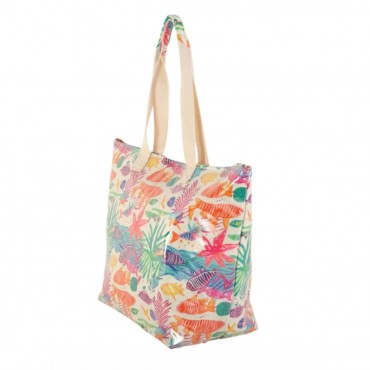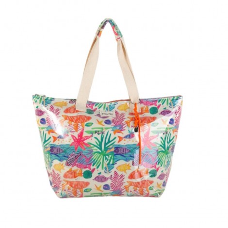 PACK BOLSO Y NECESER PLAYA LONA PLASTIFICADA KBAS CON CREMALLERA MAR