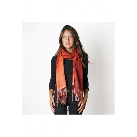 Suave pashmina abrigada en doble faz colores lisos. en un color: naranja quemado. una pieza. Medidas: 70 x 180 cm. Composición: 100º/ₒ poliéster. COMPOSICIÓN: 100º/ₒ poliéster