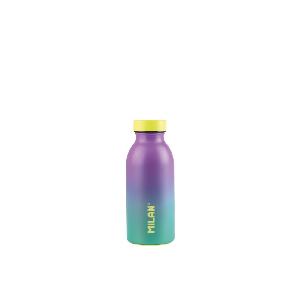 Botella isotérmica Milan Sunset 354 ml, fabricada en acero inoxidable de doble pared. Mantiene la temperatura, sin BPA y con diseño moderno degradado. Ideal para el día a día.