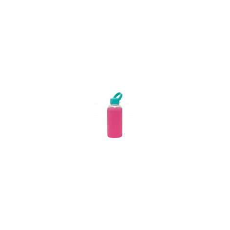 - Botella de cristal con tapón de plástico libre de BPA y faja de silicona alrededor, con mensaje divertido en español. La faja de silicona evita que la botella resbale y facilita su agarre