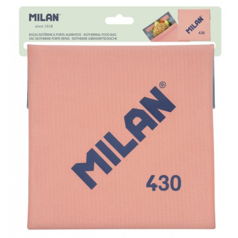 Bolsa isotérmica porta alimentos pequeña reutilizable, tipo sobre, para llevar el desayuno, la merienda o un pequeño tentempié. Tejido ´ripstop´ ligero y resistente a la rotura y rasgaduras. Utiliza una técnica especial que teje hilos gruesos de refuerzo a intervalos regulares en un patrón entrecruzado. Acabado con logotipo en relieve. Interior aislante térmico (frío/calor). Ideal para alimentos como bocadillos, fruta y frutos secos. Colección 430 since 1918, inspirada en los colores y diseño originales de las gomas de borrar MILAN, fabricadas en España desde 1918. Composición exterior: poliéster y forro interior isotérmico (P.E.V.A.). Lavado a mano. Medidas 21 x 20,5 x 1,3 cm. Capacidad: 0,30 L. Color rosa