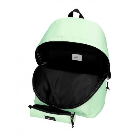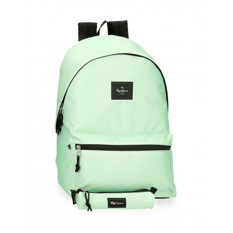 La mochila Pepe Jeans Aris en color verde claro es una opción elegante y funcional para el uso diario. Con unas dimensiones de 31 cm de ancho, 44 cm de alto y 17,5 cm de profundidad, ofrece un amplio espacio para tus pertenencias.