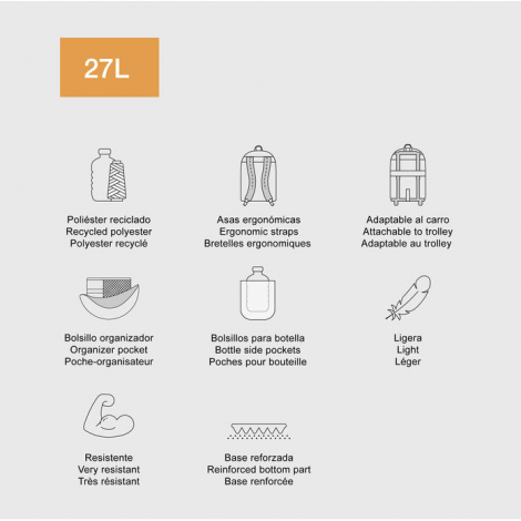 - Asas ergonómicas y acolchadas, garantizando comodidad en el transporte.