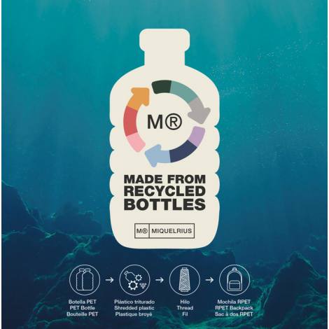 - Fabricada con poliéster reciclado, resistente y ecológico.
