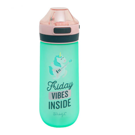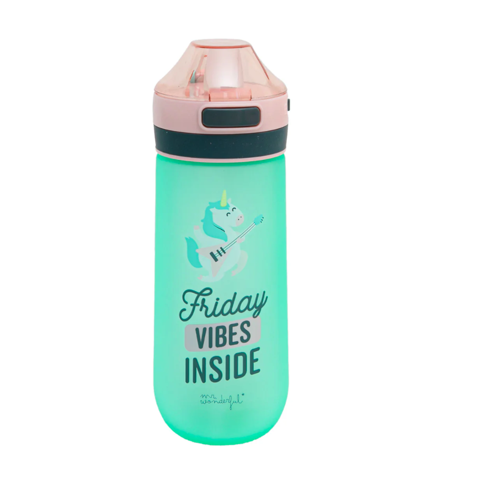 Botella Mr. Wonderful “Friday vibes inside”. Ligera, resistente y reutilizable. Capacidad: 500 ml.