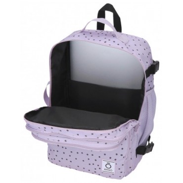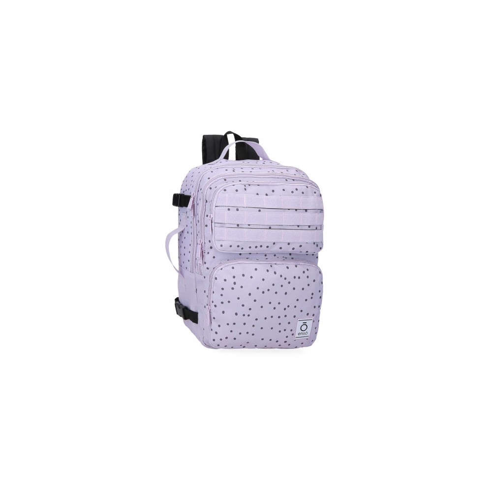 Mochila Enso Fleur 40 cm. Diseño LUNARES cómoda, ligera y con banda para carro. Ideal para clases o actividades.