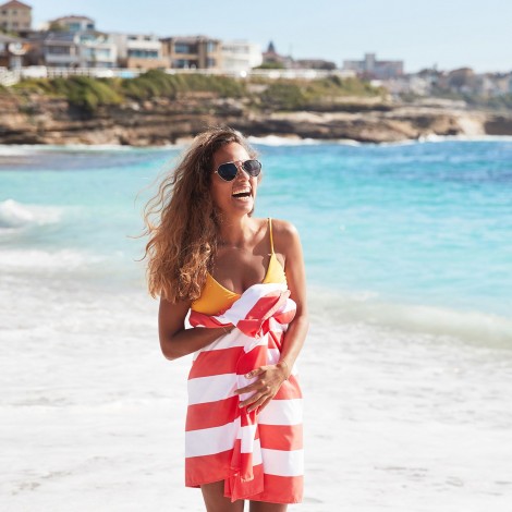 Su diseño de rayas inspirado en las clásicas toallas de cabana le da un aire atemporal y elegante. Es perfecta para playa, piscina, deporte o escapadas. Gracias a su tejido compacto, se pliega fácilmente y es muy cómoda de transportar.