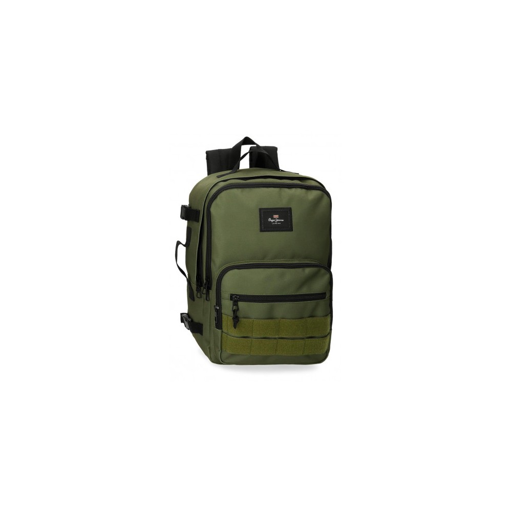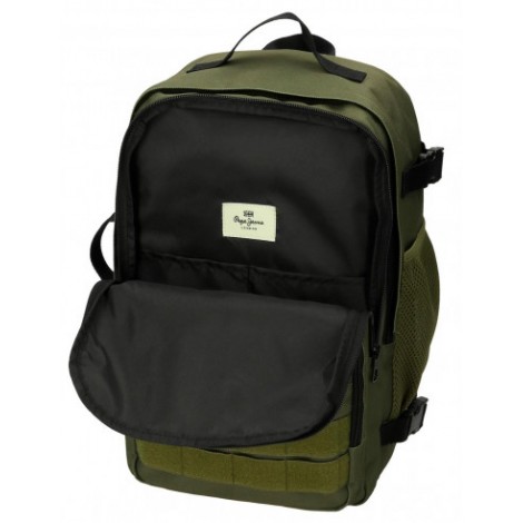 Mochila juvenil Pepe Jeans Aris Evergreen de 40 cm. Ligera, con diseño urbano y adaptable a carro. Ideal para primaria, instituto o universidad.a