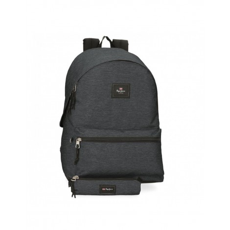Mochila Escolar Pepe Jeans Aris para Portátil 15,6" con Estuche – Mochila Juvenil Resistente DENIM