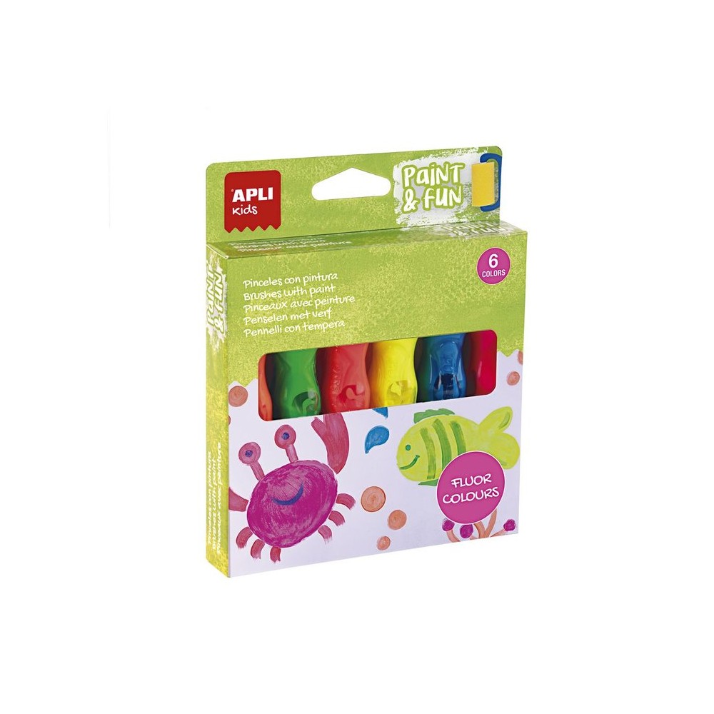 CAJA 6 TUBOS PINCELES TEMPERAS COLORES NEON 14 ML