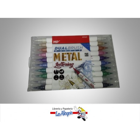 MARCADOR DOBLE PUNTA METALIZADO LETTERING 12 COLORES