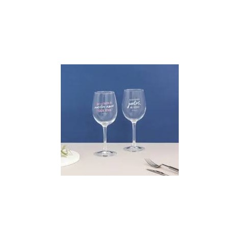 El set de 2 copas de vino de Mr. Wonderful es perfecto para brindar en cualquier ocasión especial... o simplemente porque sí. Fabricadas en vidrio de alta calidad, cada copa incluye un mensaje divertido y positivo que invita a disfrutar de cada momento. Presentadas en una caja decorativa ideal para regalo, son perfectas para celebraciones, cenas románticas o para sorprender a alguien especial.