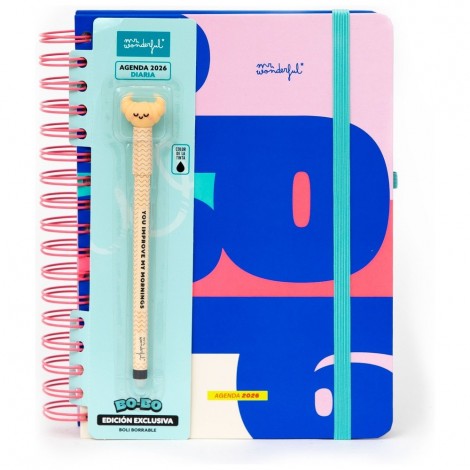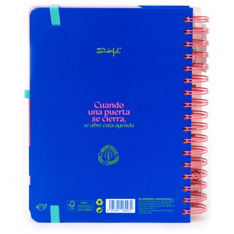 Agenda estilo Wonder de Mr. Wonderful, con organización diaria, va de enero a diciembre de 2026._x000D_ _x000D_ La frase ?de portada? se encuentra en la contraportada._x000D_ _x000D_ Esta agenda contiene:_x000D_ · 368 páginas de papel de 90gsm con la certificación FSC _x000D_ · Frases diarias motivacionales _x000D_ · Separadores con pestaña para cada mes _x000D_ · Bolsillo interior de cartón _x000D_ · Regla de plástico interior _x000D_ · 8 hojas de pegatinas _x000D_ · Juegos y extras entretenidísimos _x000D_ · Horarios y calendarios de 2026 y 2027 _x000D_ · Playlist exclusiva _x000D_ · Páginas para anotar contactos _x000D_ · Tablas de ahorro _x000D_ · Cierre con goma elástica _x000D_ · Planificador mensual al inicio de cada mes _x000D_ · Blocs de notas adhesivas con formas _x000D_ · Frases mensuales superdivertidas