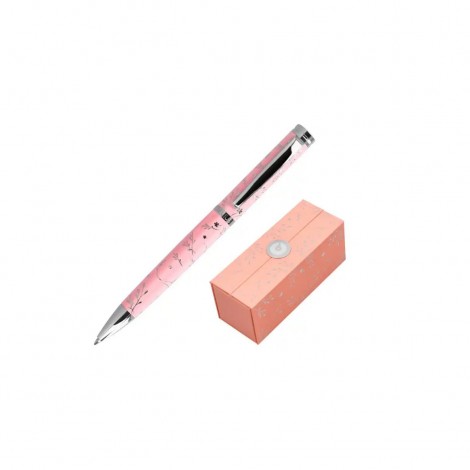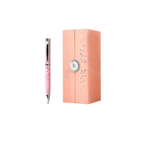 Bolígrafo Belius Bella de aluminio en rosa con detalles plateados en relieve. Tinta azul de escritura suave y presentación en caja de diseño, combinando funcionalidad y elegancia.