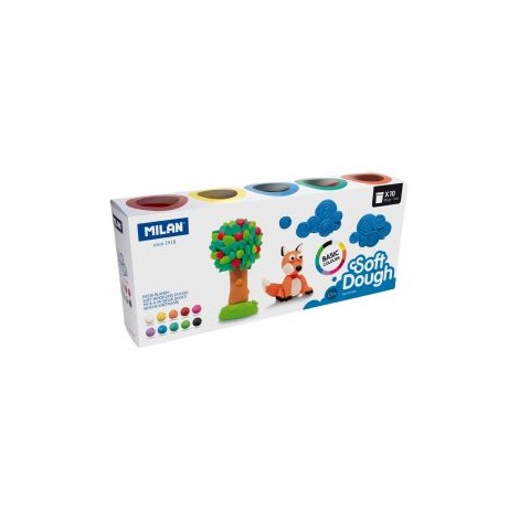 Pasta de modelar blanda a base de trigo 'Soft Dough'. Una pasta consistente y elástica, fácil de modelar. Contiene 10 colores: blanco, amarillo, naranja, rojo, rosa, lila, azul, verde claro, verde y negro. Se pueden crear nuevos tonos combinando dos o más colores. No deja residuos en las manos. Almacenada en botes de 85 g con tapa transparente apilables entre sí. Ingredientes de origen vegetal (contiene gluten).