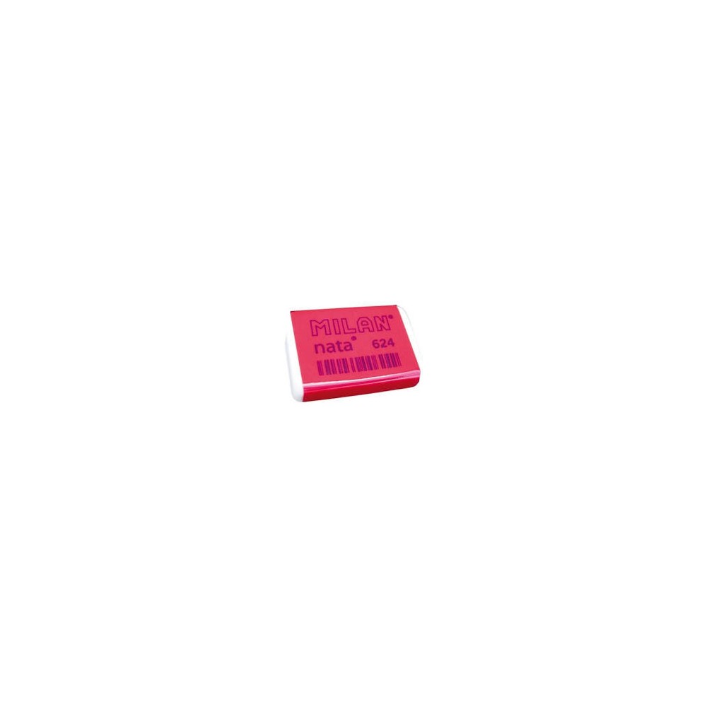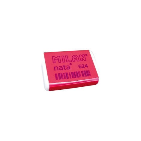 Para borrar sobre todo tipo de superficies. No daña el papel. Envuelta en celofánrosa. Nacida en 1964, es una de las gomas MILAN más icónicas. Medidas goma: 3,9 x 2,7 x 0,9 cm.