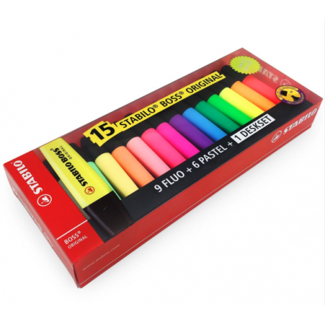 Set de 15 Marcadores STABILO BOSS Original – Colores Fluor y Pastel