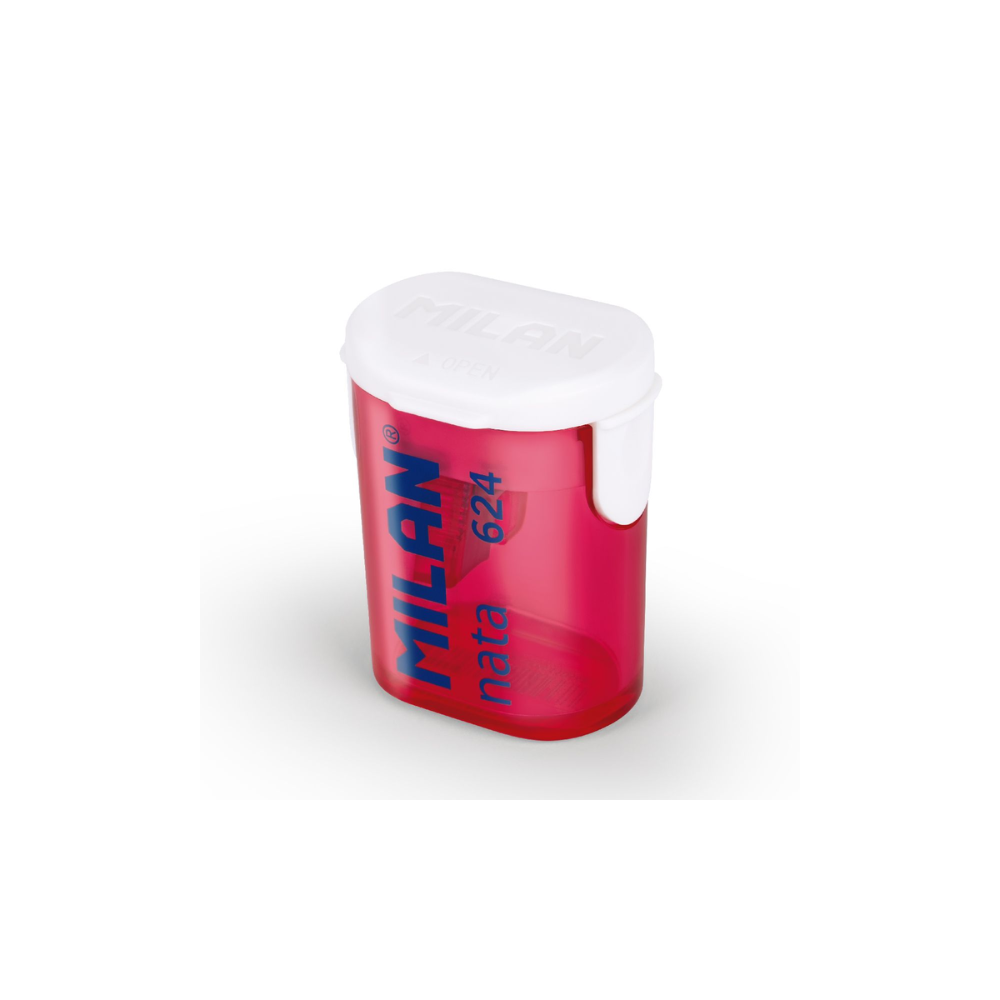 Sacapuntas MILAN NATA 624 con cuchilla segura y cuerpo transparente. Compacto y funcional para uso diario.