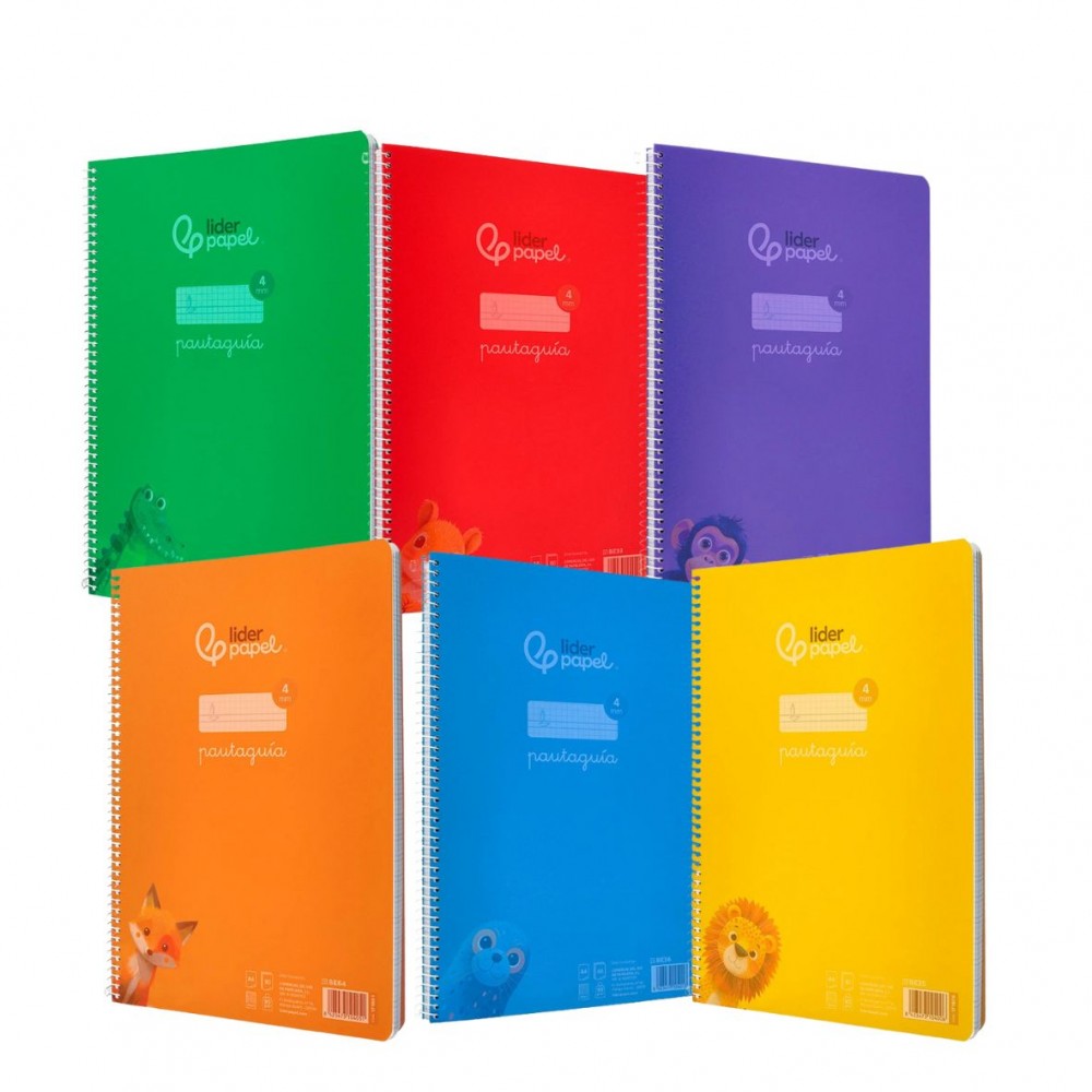 Cuaderno espiral liderpapel a4 pautaguia tapa plastico 80h 90gr cuadro pautado 4mm con margen color variado