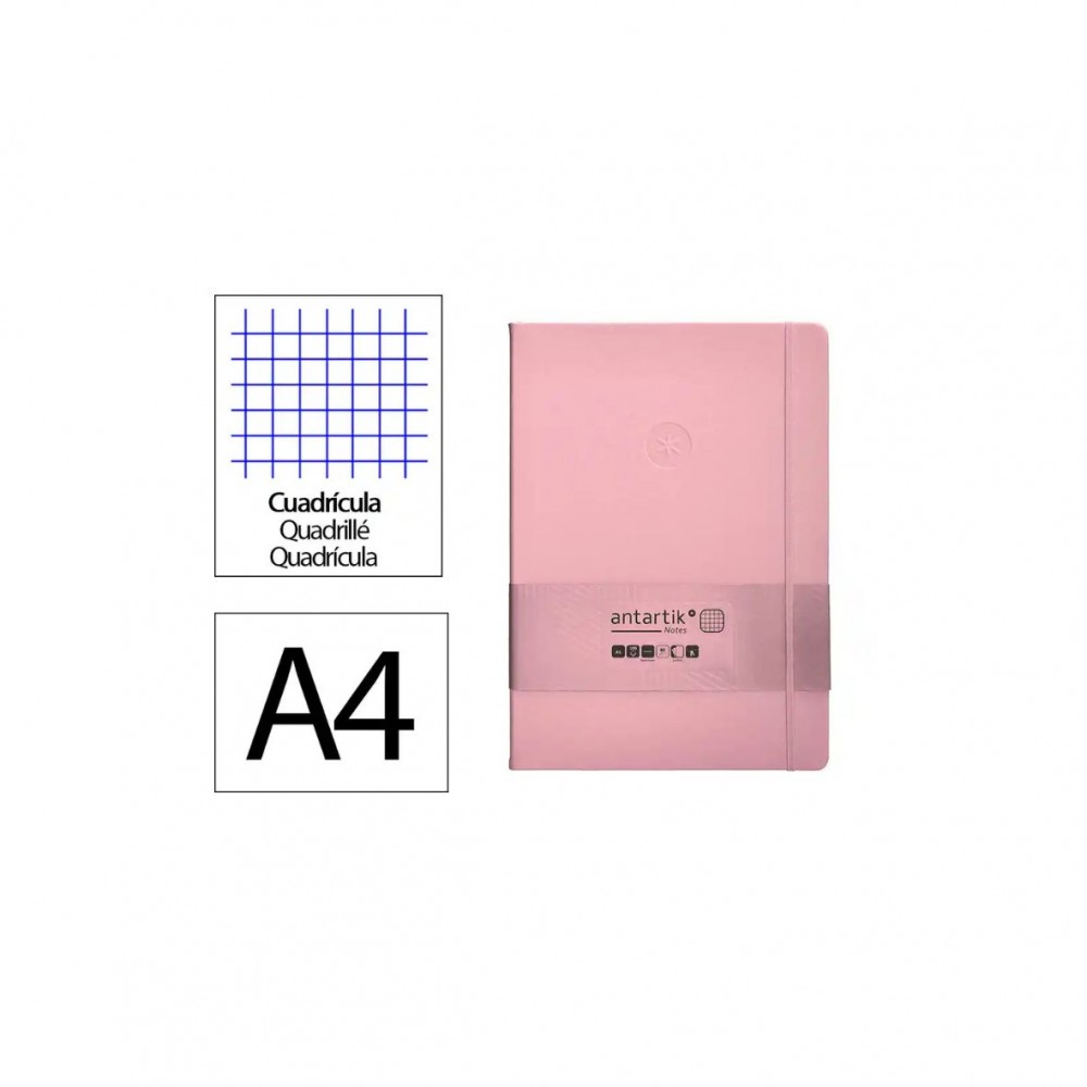 Cuaderno con gomilla antartik notes tapa dura a4 hojas cuadricula rosa pastel 100 hojas 80 gr fsc.